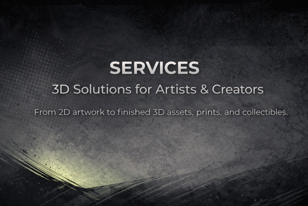 We Transform 2D Artwork into high res ready to print 3d models. While Preserving the artists original design and vision.